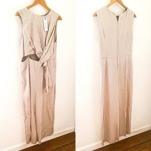 Topshop Champagne cream beige satin twist drape sleeveless flare-leg jumpsuit.