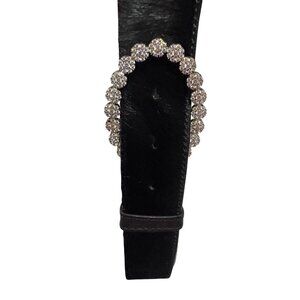 In very good pre-owned condition. The buckle is missing one rhinestone, as pictured. Please see photos for signs of use.