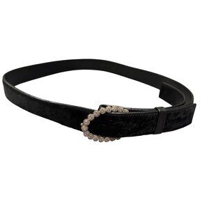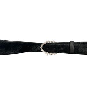 Hatton Leather and Pony Hair Belt With Rhinestone Buckle in Black