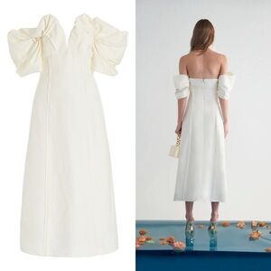 Cult Gaia Muna Dress Silk Linen Off White Puff Sleeve Midi NWT Size 10