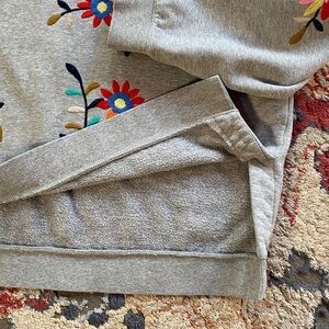 GUC. Lovely sweatshirt with gorgeous embroidery throughout, Hi-lo hem with notched sides, some minor pilling on embroidery at lower front, please study pictures. P2P 26, L front 23, L back 25”