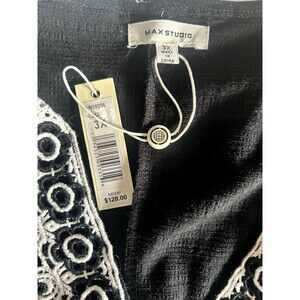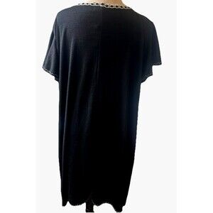 Max Studio Dress Womens 3X Embroidered Black V Neck Flutter Sleeve Shift Gauzy