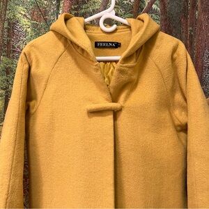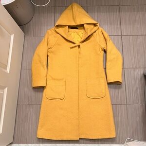 Mustard Yellow Winter Coat warm hooded hood small s cozy pockets gold golden