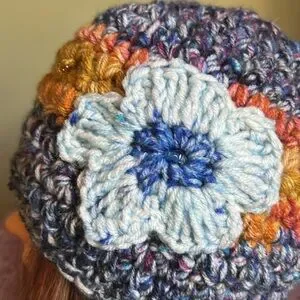 Add a touch of charm to your look with this colorful knit beanie. Featuring a delightful blue flower, it's a perfect accessory for any outfit. Warmest winter medium double stringed for warmth beanie clean never worn new wash suggestion in tied pantyhose sock or cloth laundry bag to prevent piling fuzz and maintain form and beauty. Moveable flower.