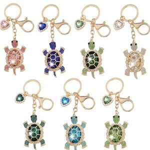 Teal green turtle bag/purse charm Keychain With heart charm is so adorable and is adorned with aurora borealis crystals. I have 7 different shades in my closet of this turtle cause it’s so cute. Follow my closet for more unique stuff at great prices. Thanks