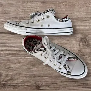 New Converse Chuck Taylor All Star Double Tongue Upper Ox 567041F White Leopard and Red Canvas Running Shoes Sneakers in Size 8