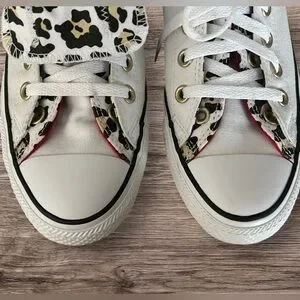 New Converse Chuck Taylor All Star Double Tongue White Leopard Red Sneakers Sz 8