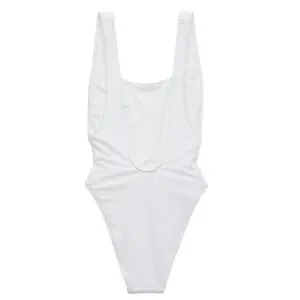 Elegant and stylish, this white ribbed swimsuit is perfect for a day at the beach or pool. Enjoy comfort and fashion in one piece.