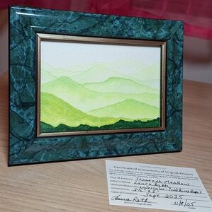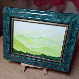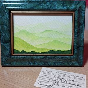 [artwork, room decor, original artwork, art, landscape, mountains, hills, calming, peaceful, handmade, hand-painted, watercolor painting, original, 3.5x5, gift ready]