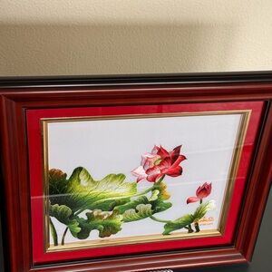 Vietnam Framed Silk Floral Embroidery Art Lotus Scent 32