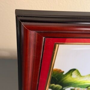 Beautiful framed embroidery art featuring vibrant red and green floral design. Perfect for home decor. XQ Vietnam, a hand-embroidered art village founded in 1996 in Da Lat, Vietnam by Hoang Le Xuan and Vo Van Quan 16 1/2 X 14 1/2