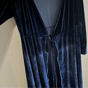 Baltic Born, Everley Velvet Duster, Velvet Kimono, Navy Blue Velvet, Embossed Floral, Floor Length Duster, Size 2XL, Plus Size Formal, Layering Piece, Empire Waist Tie, Open Front Dress, Boho Wedding Guest, Maternity Photography, Nursing Friendly, Special Occasion, Velvet Maxi Cardigan, Dark Blue Velvet, Holiday Party Wear, Elegant Loungewear.