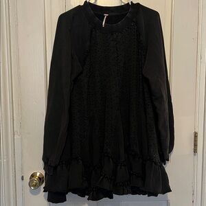Chic black dress with ruffled hem and long sleeves. Perfect for casual outings.
