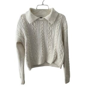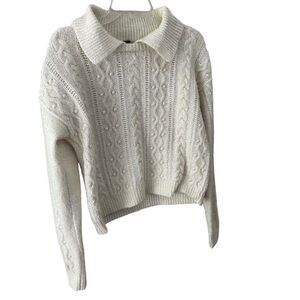 Free People Every Cloud Pullover Cable knit Collared Sweater Small White