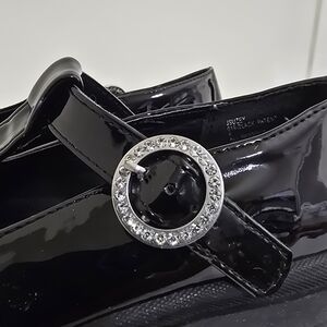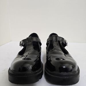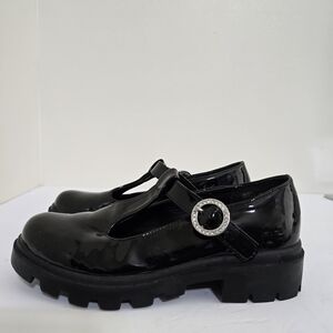 STEVE MADDEN girl's size 4 Lug T Strap Buckle Mary Jane Shoes Black Patent