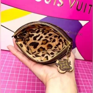 Genuine leather & monogram flower zipper charm with matching cheetah print leather