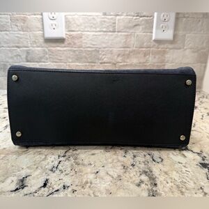 Gorgeous Kate Spade handbag in denim and black & white leather. Structured and versatile design. Ideal for daily use. Comes with leather & metal strap and hangtag. Gold hardware. Striped cloth interior. Comes with original branded dustbag! EUC. So beautiful in person! Looks like it’s barely been used! Measures: ~ 12.5” x 9.75” x 5.5”.