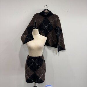 Commense Argyle Wool-Blend Sweater & Mini Skirt Set NWT, Size S/M