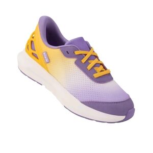Stylish Kizik sneakers in purple and yellow. Comfortable and trendy design.