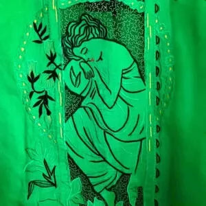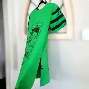 This vintage handmade linen kimono is a unique addition to any wardrobe. With its green color and art deco look, it is perfect for casual occasions. The kimono has an embroidered and embellished design, making it a one-of-a-kind piece.
