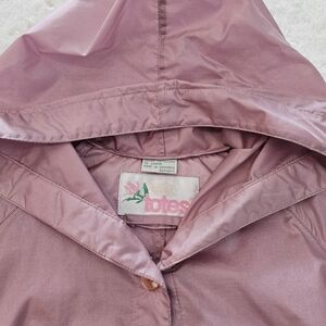 Vintage and functional this loghtweight rain jacket is ready to wear with pockets and cute bow ties at the wrists. Shows no signs of wear, in great condition!
