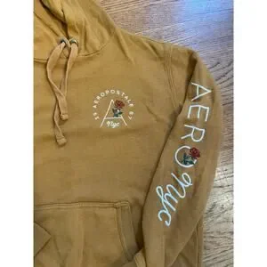 XS Aeropostale gold hoodie with roses and lettering in the sleeve