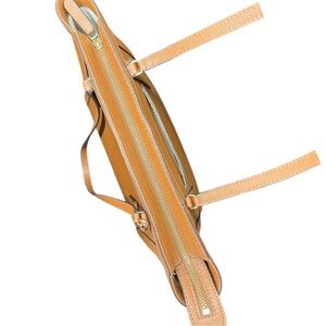 Lauren Ralph Lauren Clare Cross Hatch Leather Slim Tan Brown Gold