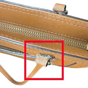 In excellent condition. A few minor flaws as pictured and can be fixed if and when needed. Bag works fine and holds items. Other than flaws, minimal wear. Zipper works flawlessly and bag comes from a pet and smoke free environment. Color is stunning and elegant, matching any outfit.