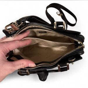 Never used, great condition. 7.75"W × 6"H × 2.75"D (width is measured across the bottom of handbag. Adjustable removable crossbody strap and dual compartment with top zip closure.