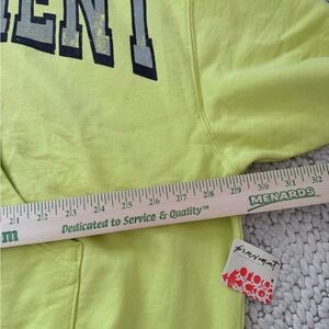 Oversized. Measurements are in the photos. Bright yellow hoodie with FP Movement logo. Features a front pocket and hood.