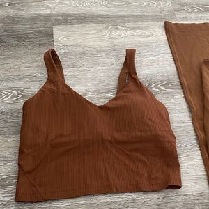 Discover ultimate comfort with this stylish women's brown leggings and top set. Ideal for both casual wear and active days. Size small (both are probably size 4-6 in lulu but I don’t have the tags to be sure)