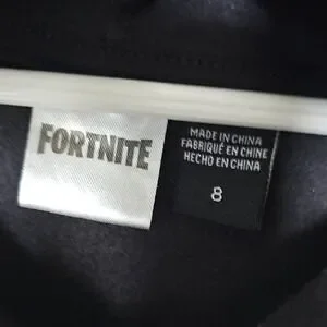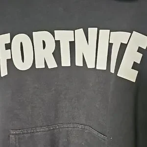 Black hoodie with Fortnite logo. Comfortable and stylish. Basic and simple style. Thin and lightweight. Front kangaroo pockets. Some fading from washing but still a great little throw on and play sweatshirt.