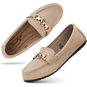Women khaki Herstyle Penny Loafers Lightweight Walking Flats Casual Shoes