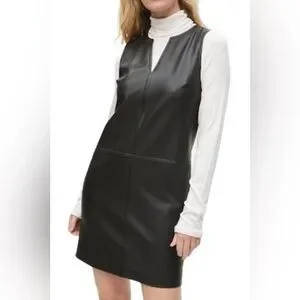 Michael Stars Black Vegan Leather Cecelia Dress Size Medium