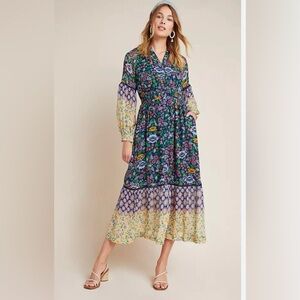 Anthropologie Maeve Ondine Maxi Dress in a blue and yellow floral print. Size S
