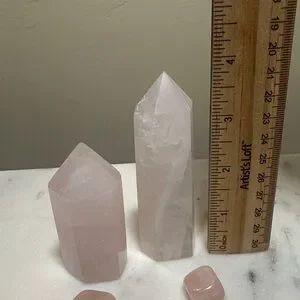 Enhance your space with this elegant rose quartz crystal set. Perfect for adding a touch of pink to your home decor.