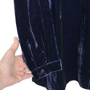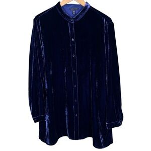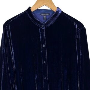 Luxurious silk-blend velvet tunic in a rich purple hue with Eileen Fisher’s signature relaxed, minimalist silhouette. Polished enough for work yet elegant for evening, with a fluid drape that elevates any outfit.