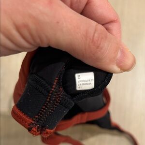 Set of two sports bras - lululemon Wunder Train Racer Bra. Includes one in Terra Orange and one in Medium Forest. Comfortable and stylish. Size 8. Excellent condition, gently used. Always washed in cold, delicate, no fabric softener.