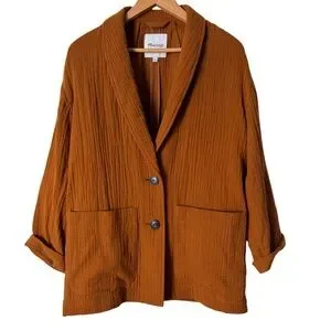 Madewell Lightspun Dorset relaxed fit shawl collar Blazer, Orange, M