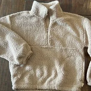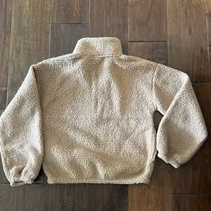 Hollister Gilly Hicks Cozy Fleece Sherpa 1/2 Zip Matching Shorts W/ Pockets Tan