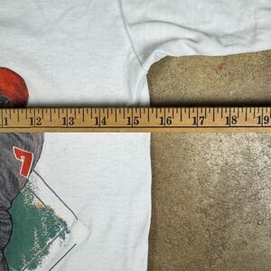 Awesome early-90s Duck Head Upper Deck "Clutch Hitter" baseball graphic tee. Love the action print with the stacked baseballs and number 7 batter illustration. Made in the USA and fits like a true vintage small, slim and worn in just right. Great piece if you're into old-school sports graphics.
