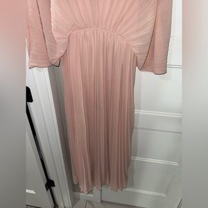 Light Pink Pleated V Neck Maternity Maxi Dress