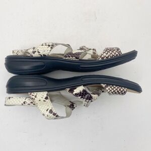 Keywords: Revere sandals, snake print, embossed leather, strappy sandals, comfort footwear, women's sandals, European size 42, US size 11, summer shoes, casual sandals, orthotic friendly, stylish comfort