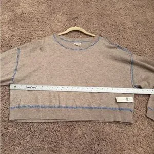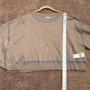 NWT new large Anthropologie pilcro Alani whipstitch cropped cashmere sweater tan