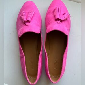 J Crew NEW bright pink suede tassel loafers, sz 8.5.
