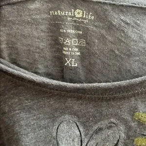 NATURAL LIFE Gray Floral Graphic Tee NWOT