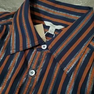 NWT Joie "Dyllis Dark Sapphire" short sleeves striped top blouse. Dark blue (navy) & orange stripes. Metallic parts. Size S, see pictures for measurements. No stain, no rip. Non smoking house.