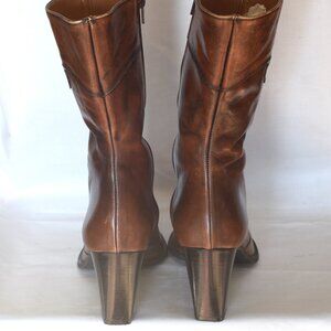 Tiffany Brown Leather High Heel Boots With Side Zipper - Italy