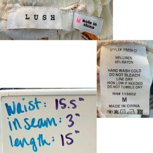 LUSH Linen Blend Abstract Print White Shorts Size M