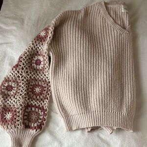 Slightly oversized crochet sleeve sweater by Andrée by Unit. Free People look for way less. Worn once in non smoking home. Like new!
